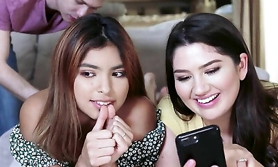 A Don brought two girls and cheat them. Made four-way fucking session takig his aids also. A xxx gig with beautiful girl