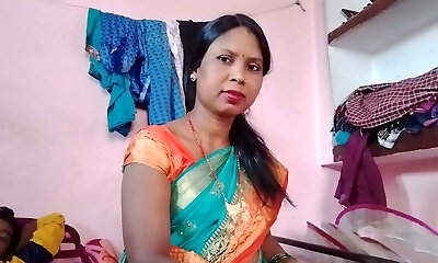 Tamil MILF Stepmom Stuck Under Bed with white saree & black blouse, when she cleaning under bed then son-in-law fuck her