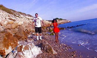 她刚满18岁,印地安那狐狸剃光了的阴道正等着被海滩上的大公鸡操